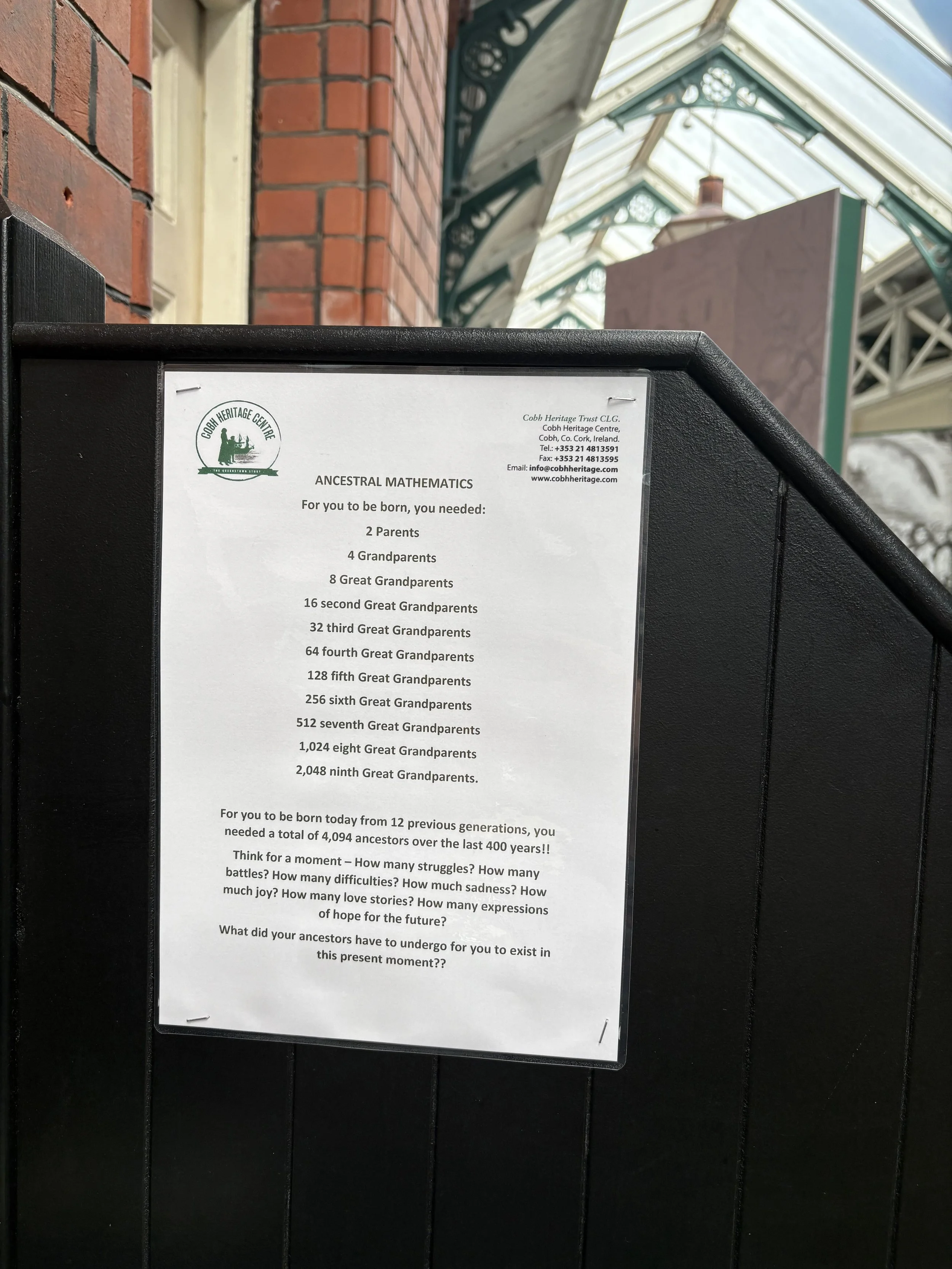 In middle school, I did a family tree, and the idea of time felt soooo much more distant. I had it in my mind that my maternal grandmother’s family immigrated from Ireland to the United States sooooo long ago. I did that childhood thing where you completely rewrite history. I arrived to Dublin thinking my family immigrated well before the Great Famine, sometime in the 1800s….
