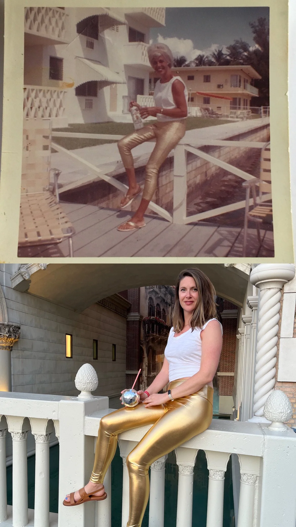 Grandma above (in the ~1970s) and me emulating her flare below.